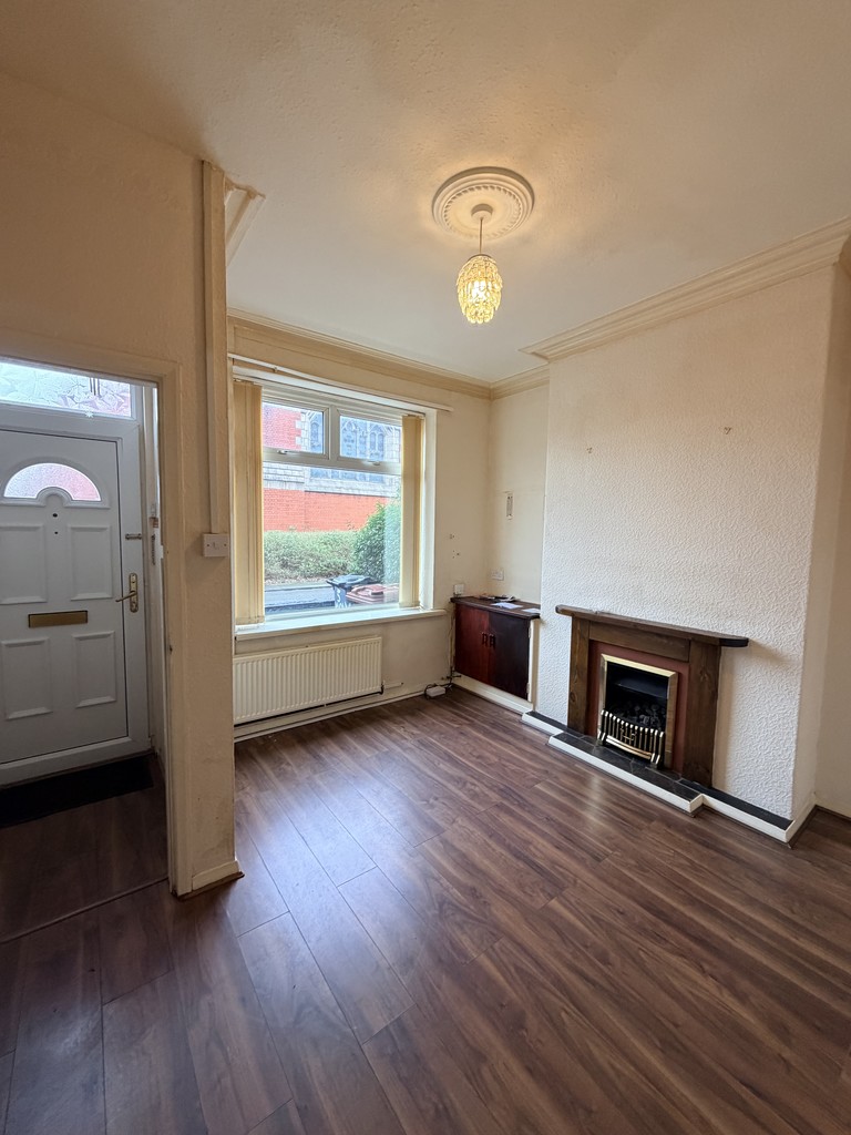 LOUNGE 12′ 1" x 11′ 1" (3.7m x 3.4m) uPVC double glazed window to frontal aspect with two openings, double radiator with separate thermostat, built in cupboard to recess housing meters and fuse box, open gas fire with hearth, surround and plinth, coving to ceiling, ceiling rose, ceiling pendant, alarm sensor, 3 double electric sockets.