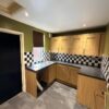 KITCHEN 9′ 2" x 7′ 2" (2.8m x 2.2m) Modern range of wall and base units comprising of cupboards and drawers, laminate worktop, splashback tiling, single drainer stainless sink unit with mixer tap, space for oven, hardwood door to side aspect leading to rear garden, uPVC double glaze window to side aspect with one opening, inset ceiling spotlights, access to roof space, three double electrical sockets, external extractor fan.