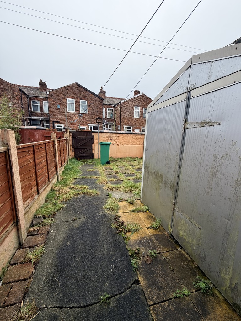 REAR GARDEN Security gate to rear door, outside lean-to storage room with electric, large storage unit, outside water tap, gate to rear, walled garden.